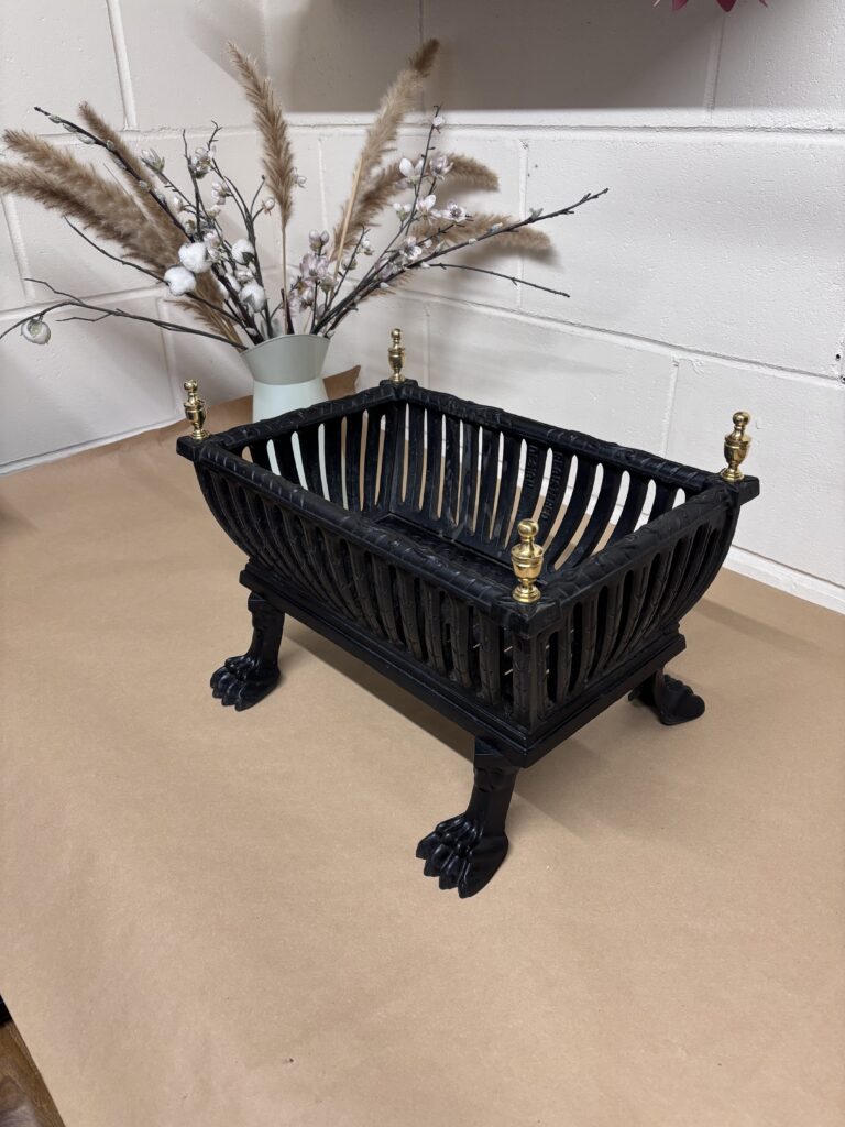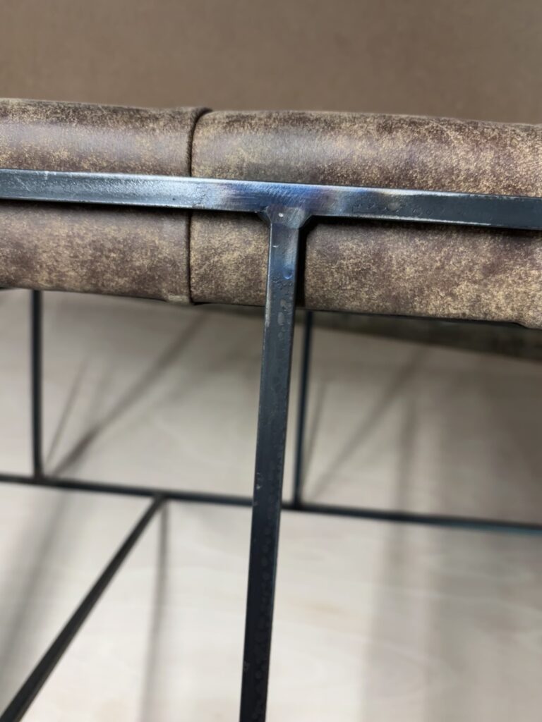 The rustic effect framework is in solid steel and left in its natural colour with a coat of clear lacquer.