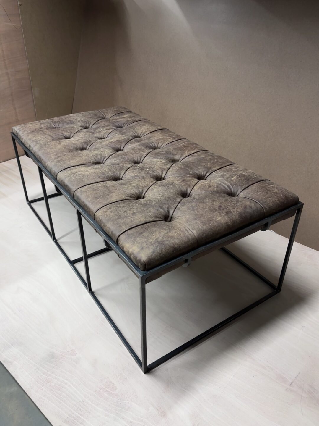 An upholstered coffee table made by ourselves. This can also be used as extra seating or a footstall.